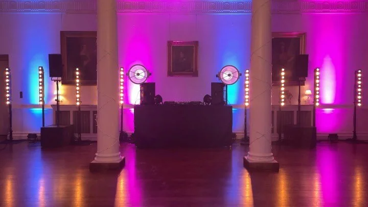 We had a vast array of lighting on site from outdoor decorative in various locations lighting up trees and other historic eye candy. Through to Moving head effects lighting on the dance floor for the guests to enjoy in to the early hours.
